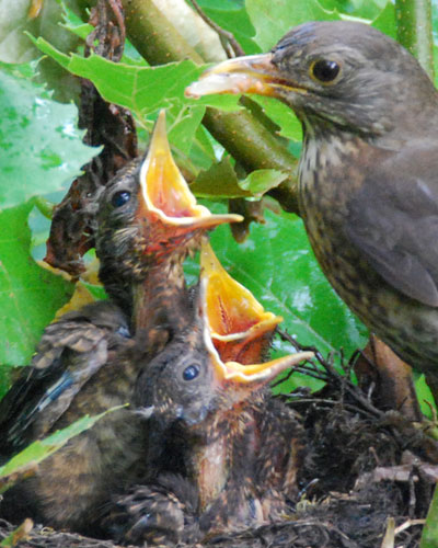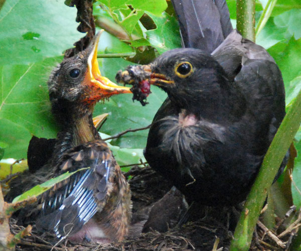 Wenige Tage nach diesen Aufnahmen war das Nest verwaist, die Amselfamilie war ausgezogen. Ab und zu haben wir noch einen der kleinen Zausel in unseren Blumenbeeten hüpfen sehen, ganz ohne jede Scheu.