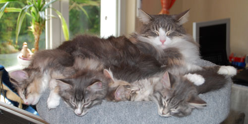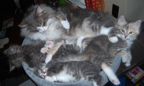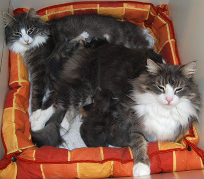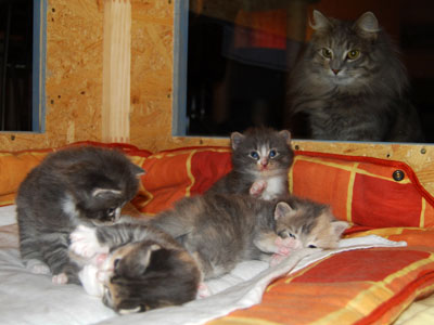 Wenn Fernando sich in die Kinderpflege einschaltet, kann es in der Wurfkiste schon mal ein wenig eng werden.