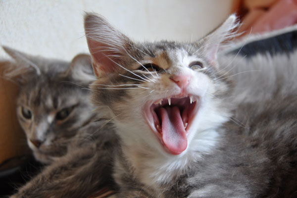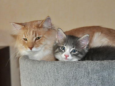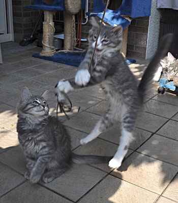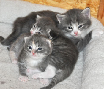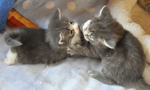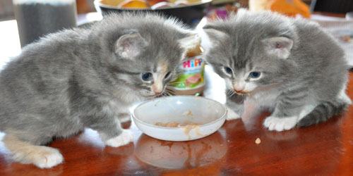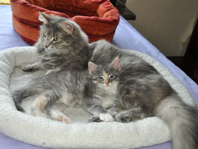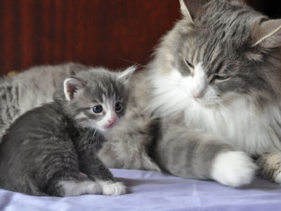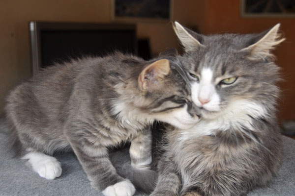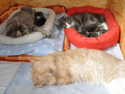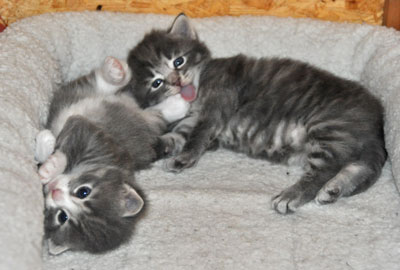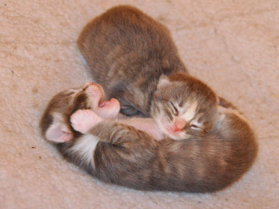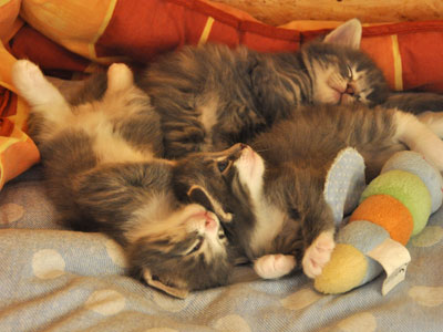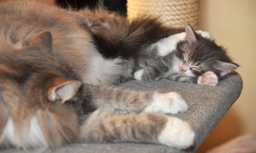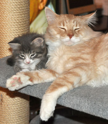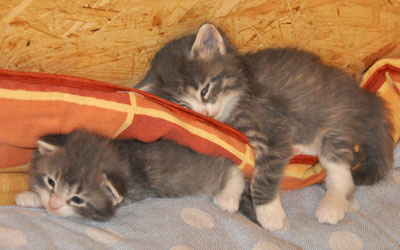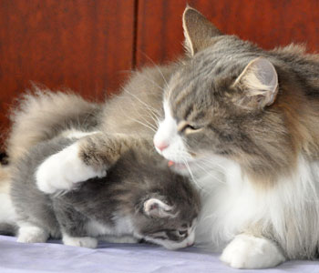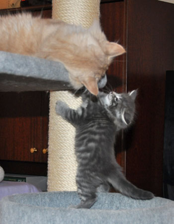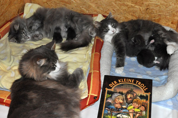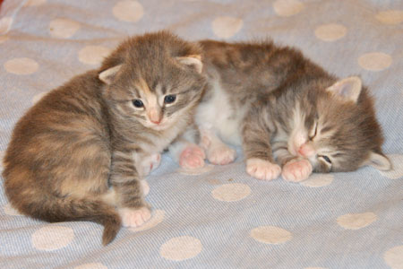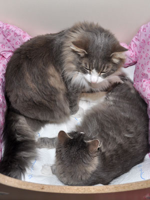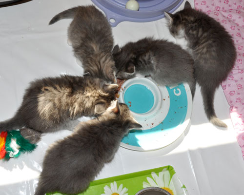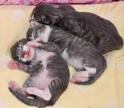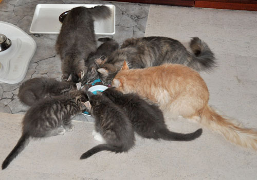 Für ihren Erstgeborenen hat Dinah eine ganz neue Form der "Handaufzucht" entwickelt. Er steckt sein Näschen gerne in die Ballen ihrer Vorderpfote und schmatzt dann ganz laut.