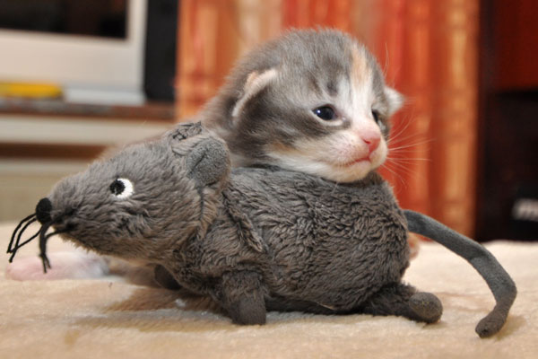 Gipsy ist unsere 3-farbige Glückskatze in diesem Wurf. Eine klassische Weiß-Verteilung wird von der creme-farbenen Stirnflamme gekrönt. Und damits nicht zu langweilig wird, gibt es locker verteilt noch einige weitere Creme-Tupfer. Das Ganze wird gekrönt durch ein kräftiges Silber. Die Fotos der ersten Wochen lassen kaum erahnen, dass sie einmal ein sehr helles Kleidchen tragen wird.