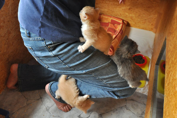 Sobald man sich nähert, wollen natürlich alle raus aus dem Kindergarten.