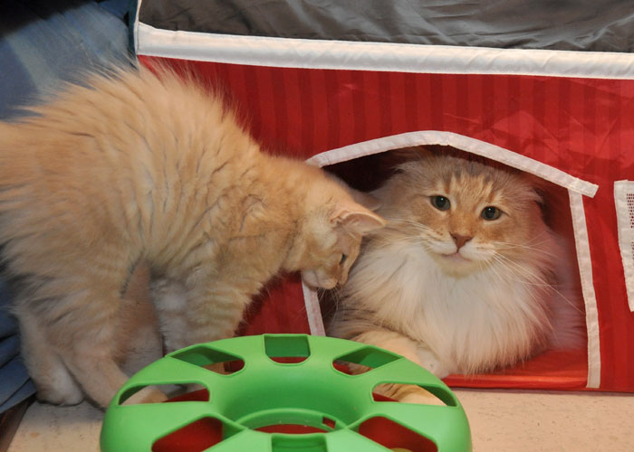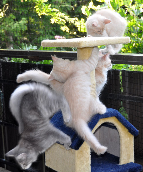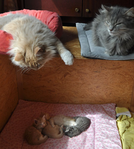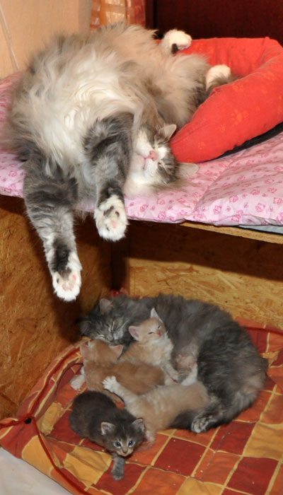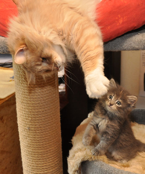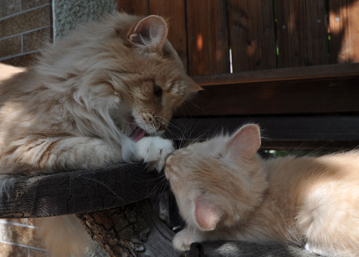 Sauber machen im Kindergarten ist gar nicht so einfach. Das nutzen gleich alle für eine Kletterpartie.