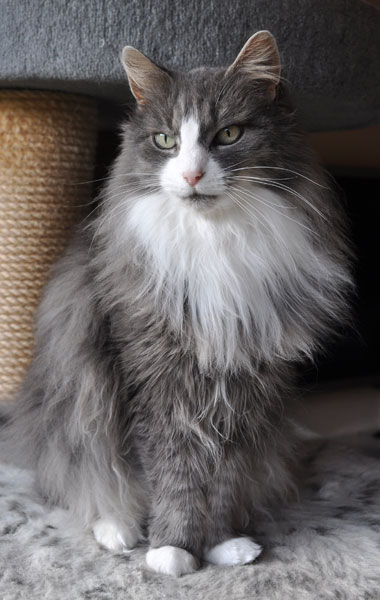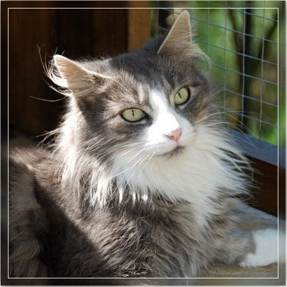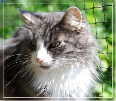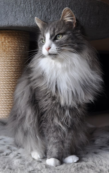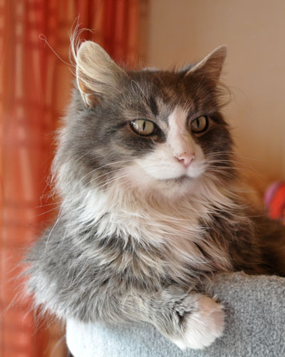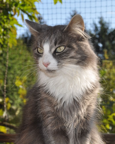 Dinah ist unsere erste Norwegerin und damit Grundstein zu unserer Zucht. Sie ist Kletterkünstlerin und Ausbrecherkönigin.